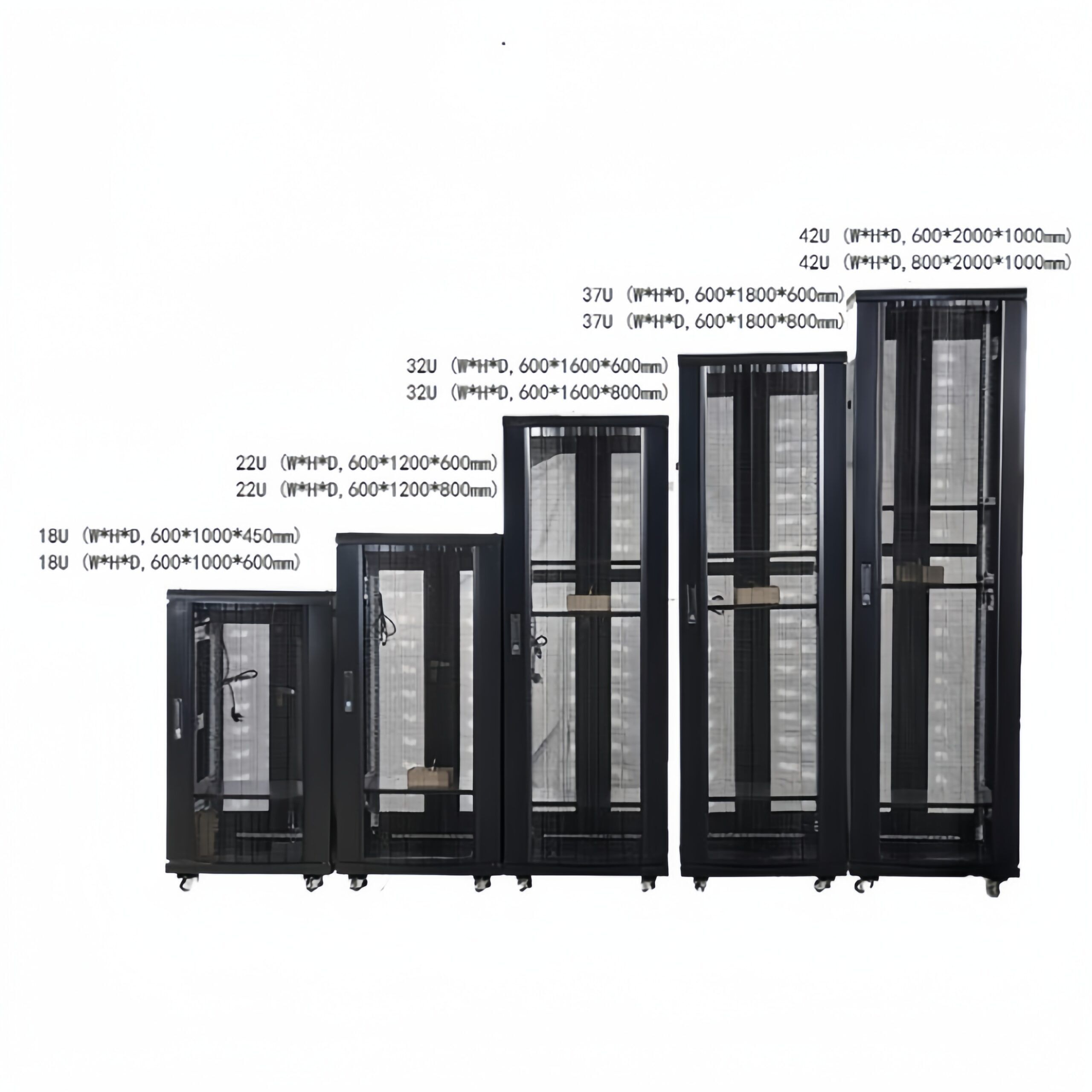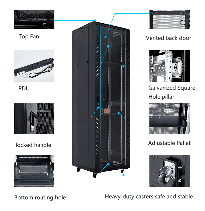 | Altura / Anchura / Profundidad | 18U-42U, Anchura 600/800mm, Profundidad 600/800/1000/1200/1400mm, Altura 1000-2000mm |