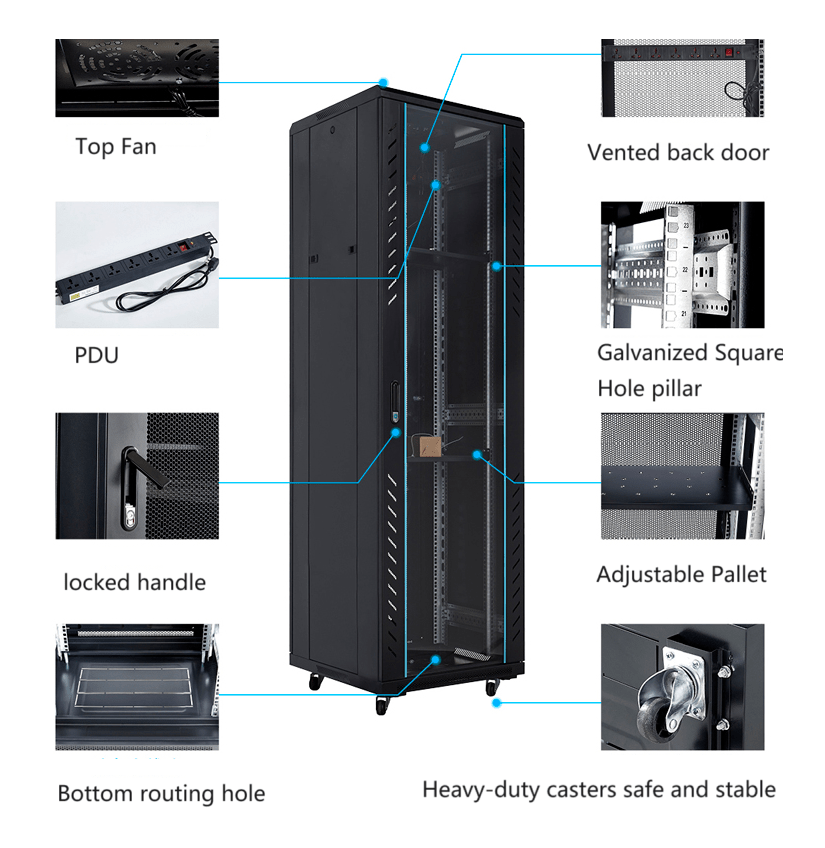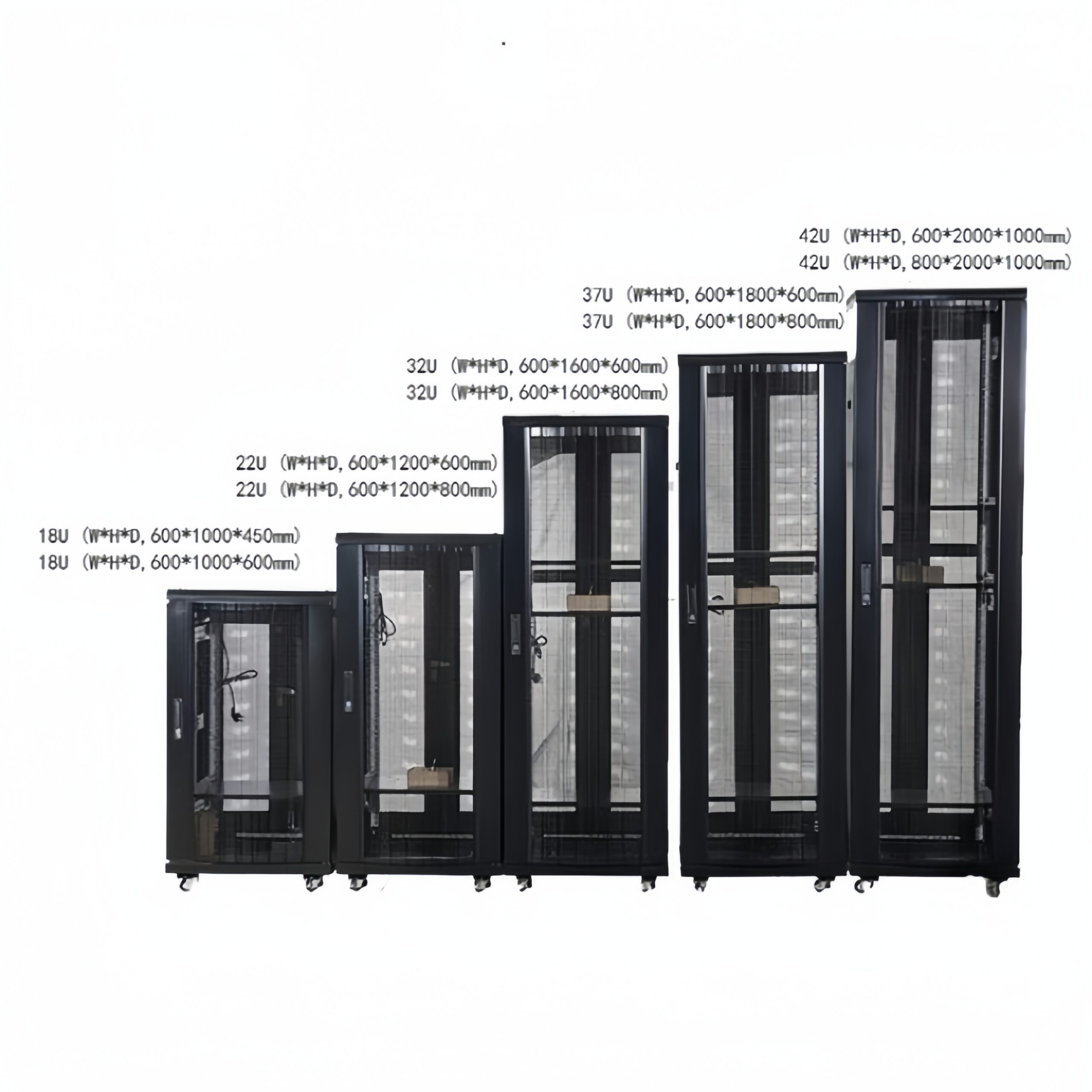 | Height / Width / Depth | 18U-42U, Width 600/800mm, Depth 600/800/1000/1200/1400mm, Height 1000-2000mm |
