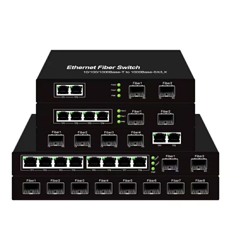 • Supports SFP and Standard Ports: Depending on the model, supports SFP (Small Form-factor Pluggable) and standard fiber ports.